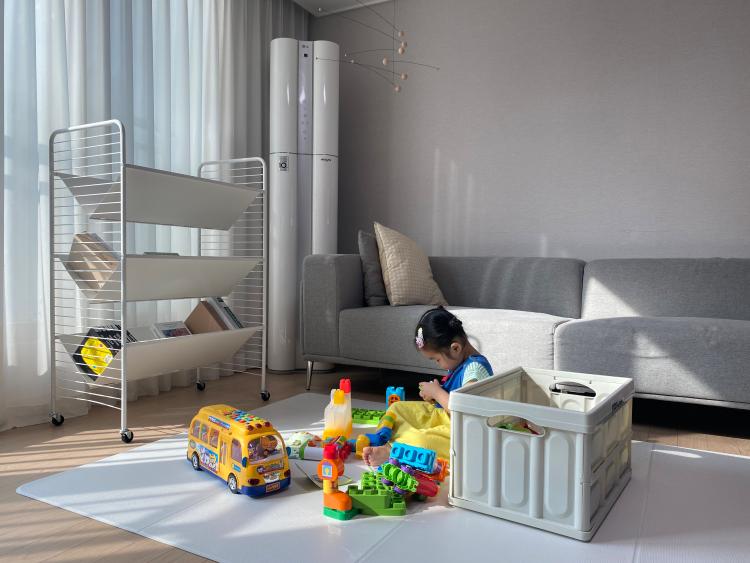 평화로운 어느 주말, 오랜만에 블록놀이를 했어요. 팬트리에 상자를 보관하고 하고 싶다고 할때? 주말에 보통 꺼내주는 편이에요