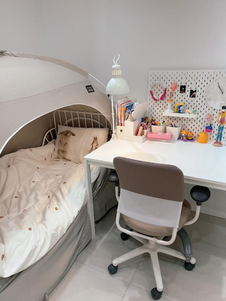 이케아 페그보드(타공판)를 활용하여 아이방을 꾸미면 아이들의 알록달록한 문구용품도 인테리어 소품이 됩니다