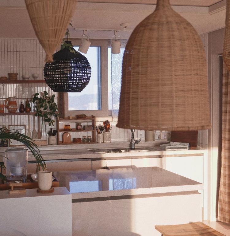 라탄조명이 잘 어울리는 우리집 주방