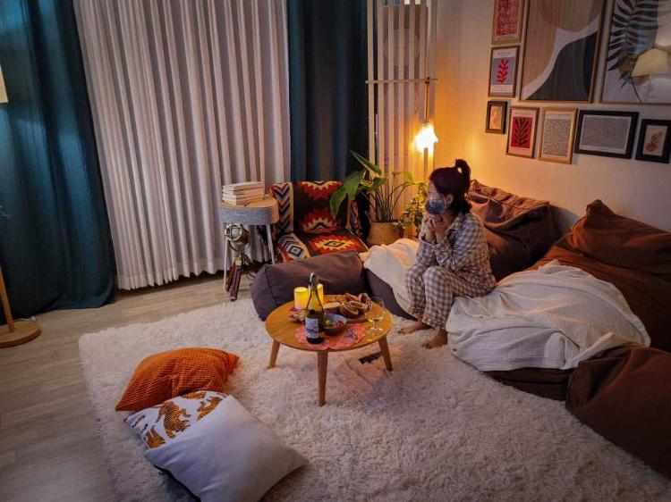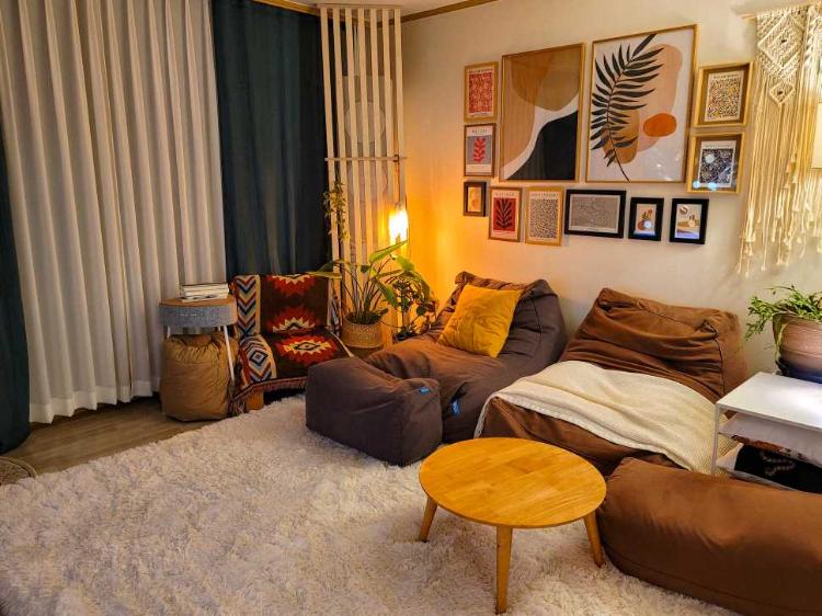 패브릭으로 꾸민 거실에서 먹고 자고 놉니다~!