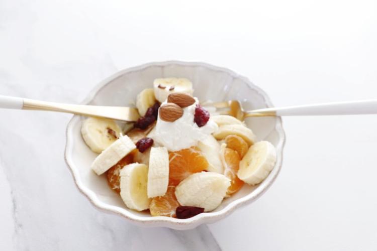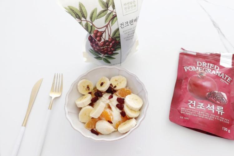주말 아침 간편하게 즐기기 팁! 부라타치즈를 따뜻하게 데친 후(뜨거운물 약 3분) 과일, 건과일, 견과류를 넣은 후 올리브유와 발사믹식초로 드레싱 해 드세요:)