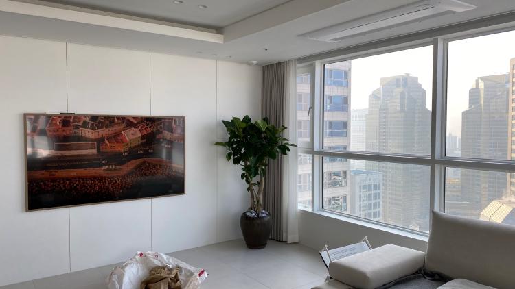 프레임티비가 인테리어로 괜찮은거 같아 75인치로 엑자향 벽걸이로 달았습니다
