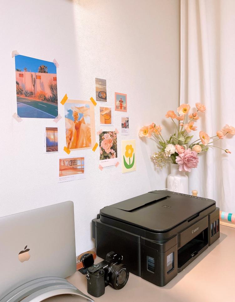 포스터&엽서를 마스킹테이프로 벽면에 붙여주었더니 심심했던 공간이 화사해졌어요.