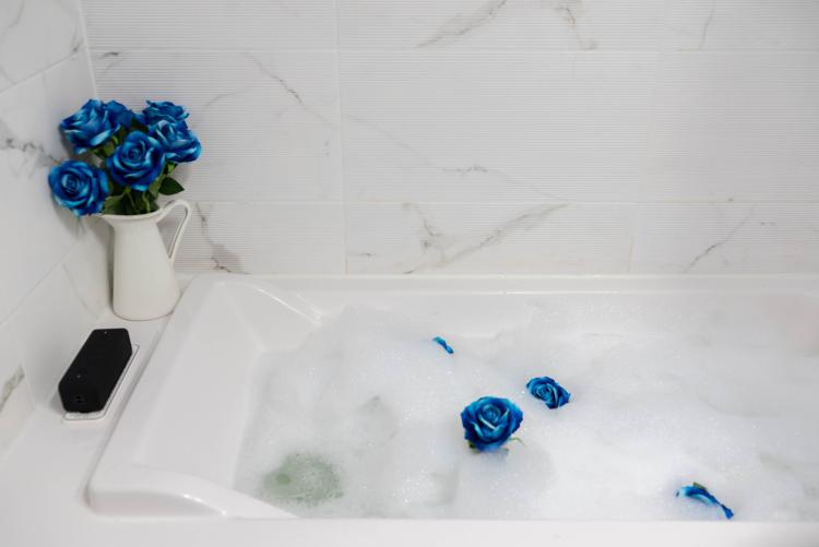 오늘의 힐링. 말차 버블바 솔솔 풀고 음악 들으면서 🎶 뜨신물에 피로 풀기🖤