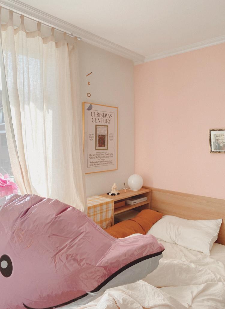 책장을 벽쪽으로 밀었더니 확실히 넓어보이는 것 같아요