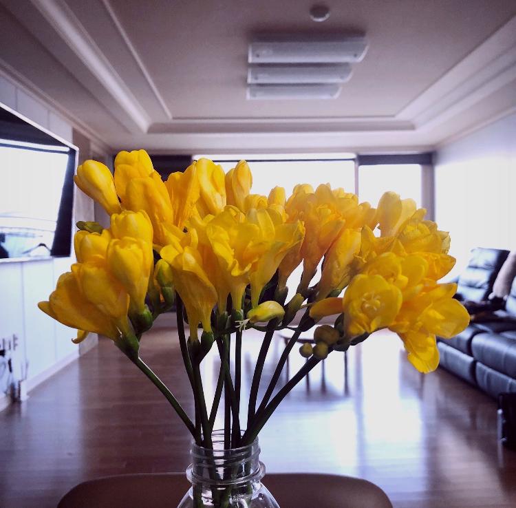 다쓰고 남은 플라스틱병에 꽂은 프리지아..! 친환경을