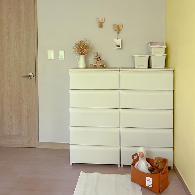 울애기 수납장은 가벼운 소재로 골랐어요! 나중에 아이가 커서 장난감 수납하기도 좋을 것 같고 상판이 우드로 되어있어서 무게감 있게 느껴지네요.