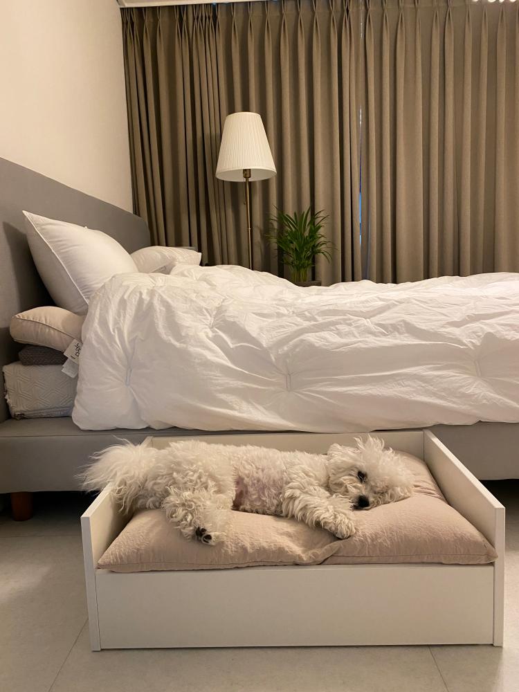 강아지 침대.사줬더니.너무 잘.자고 인테리어에도 찰떡이에요