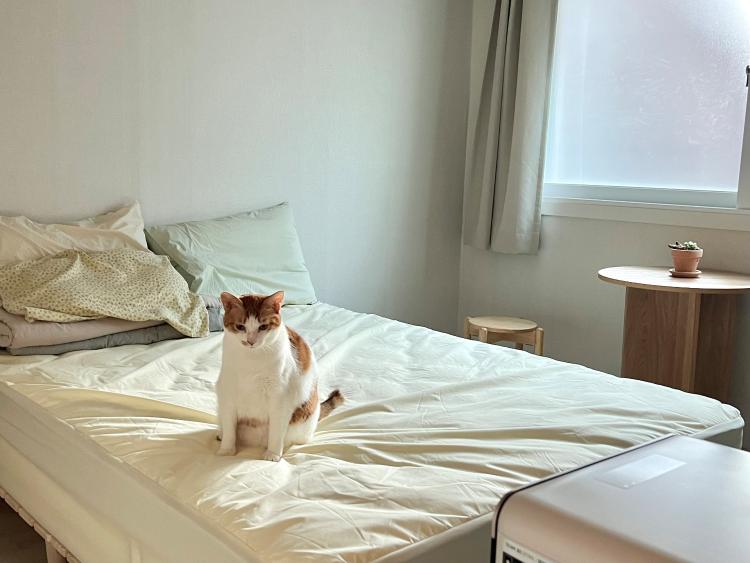 침대 커버를 노랑노랑하게 바꿔봤어요