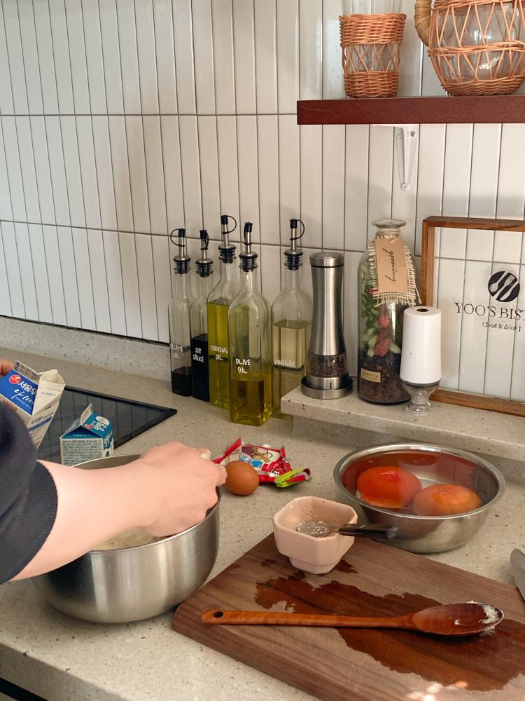피자 먹고 싶다하니 도우만들고 있는 남편 ·̑◡·̑