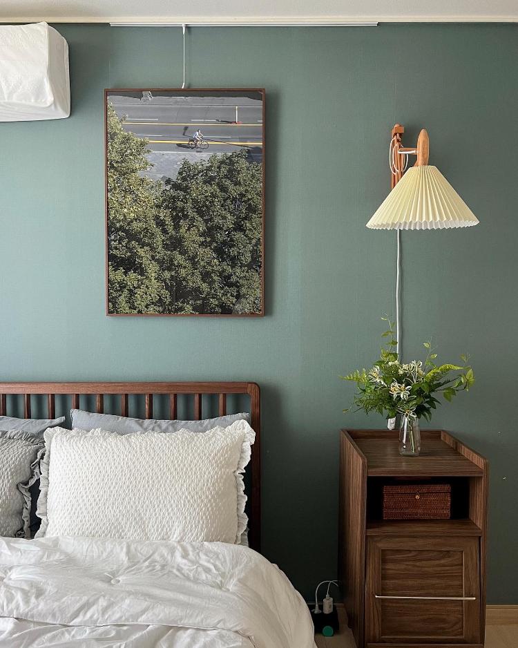 그린 컬러가 있는 침실이에요