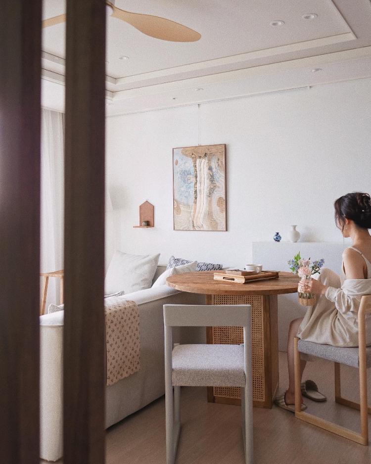 선물받은 꽃을 바로 직접 만든 라탄 화병에 꽂아주기
