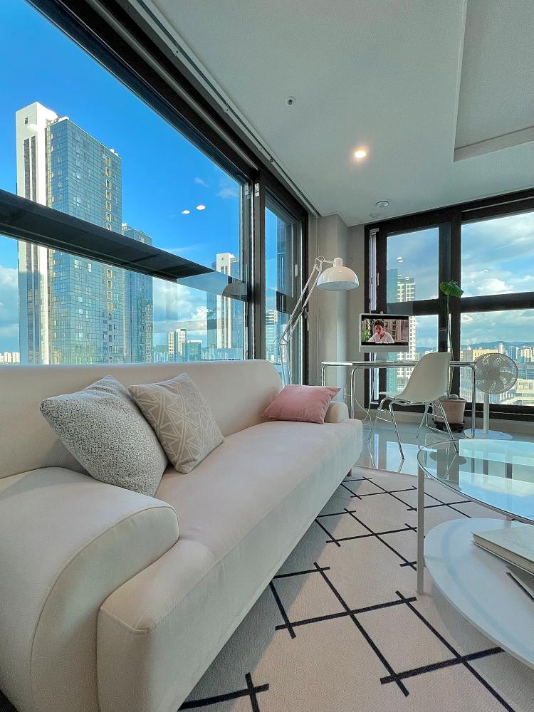 장마가 길어지니 맑았던 하늘이 그리워져요~😫 시원한 가을날을 기다리며! 아이맥도 거실로 옮겨보았더니 너무 잘 어울리네요! 🤍🤍🤍 계절가전 선풍기도 화이트 컬러로 맞췄답니다 ㅎㅎ