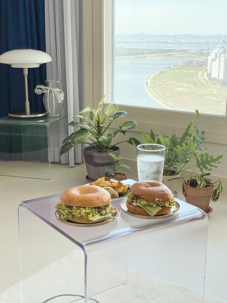휴가에는 남편이 해주는 요리! 베이글 버거 칭찬해👏👏