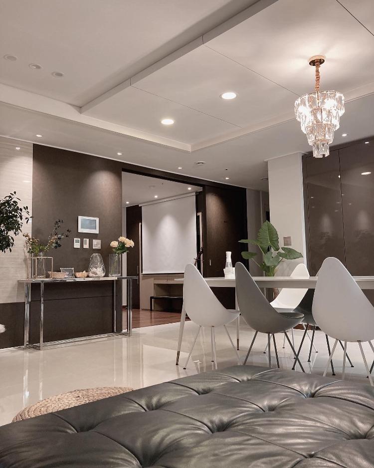다이닝 공간과 이어진 우리집 세미거실이에요. 빔프로젝트를 두고 영화를 볼 수 있어요:)