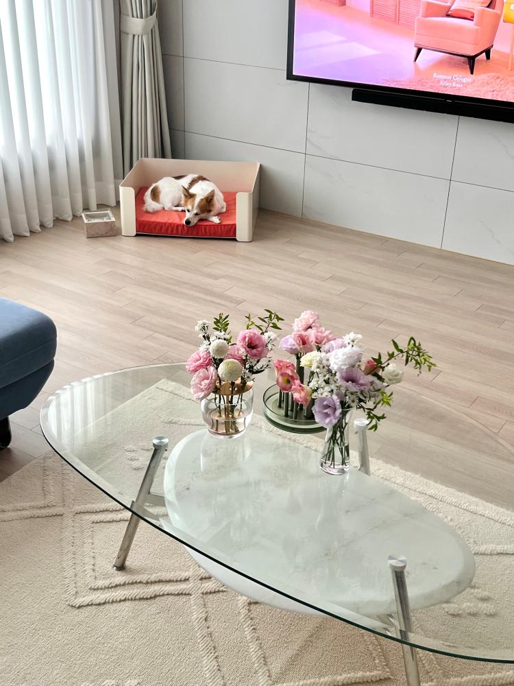 한가롭고 여유로운 평일 오후🌷🌿 소파테이블 위에 꽃병들이 유독 예뻐보여요😊