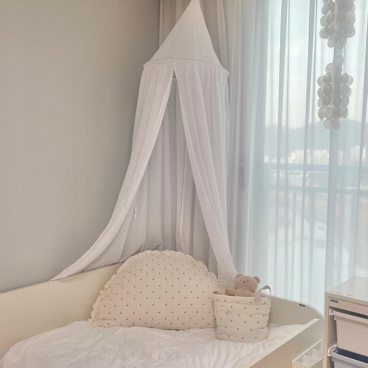 아이방에 캐노피를 달아주었어요 ! 화이트색상이라 하늘하늘 예뻐보여요 🤍 좀 더 아늑한 공간이 된것 같아요^^