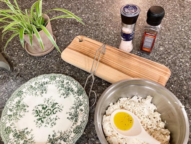 두부 두모를 으깬 후 소금, 후추로 간을 한 후 올리브유, 계란만 넣어 섞어주면 반죽 끝!
