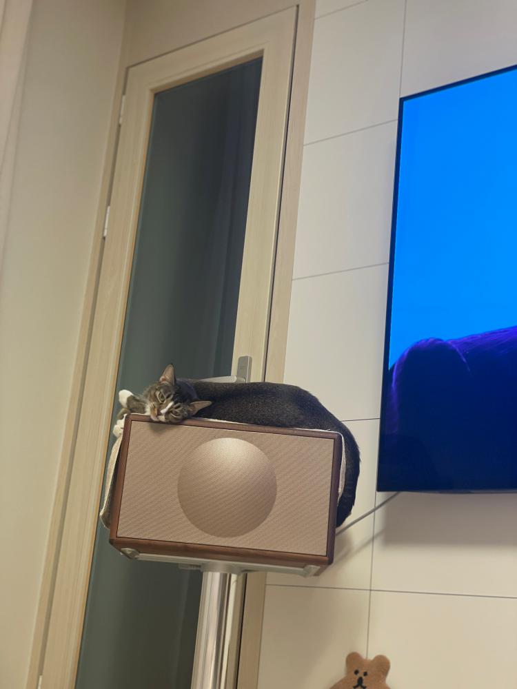 스피커 위 고양이씨.하이룽